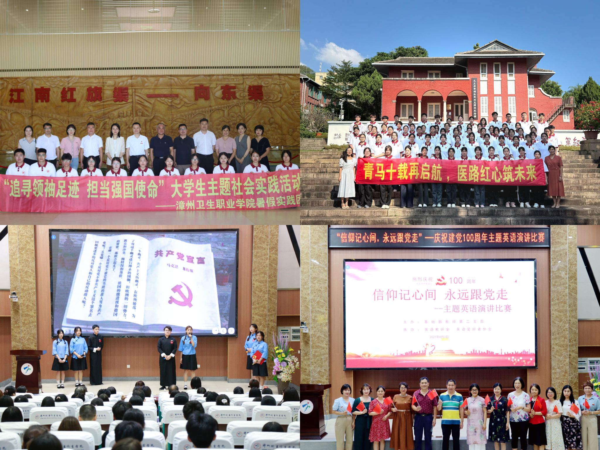 挖掘红色文化资源,邀请漳州红色基地专家入校讲课,开展“追寻领袖足迹,赓续中华文脉”社会实践、“寻红色印记,弘扬五四精神”主题实践等,最大限度发挥红色文化、地方文化的思想教育和价值引领作用。近年来,党建特色文化活动在《漳州宣传》、《闽南日报》、新福建、东南网、学习强国等报道40多篇。