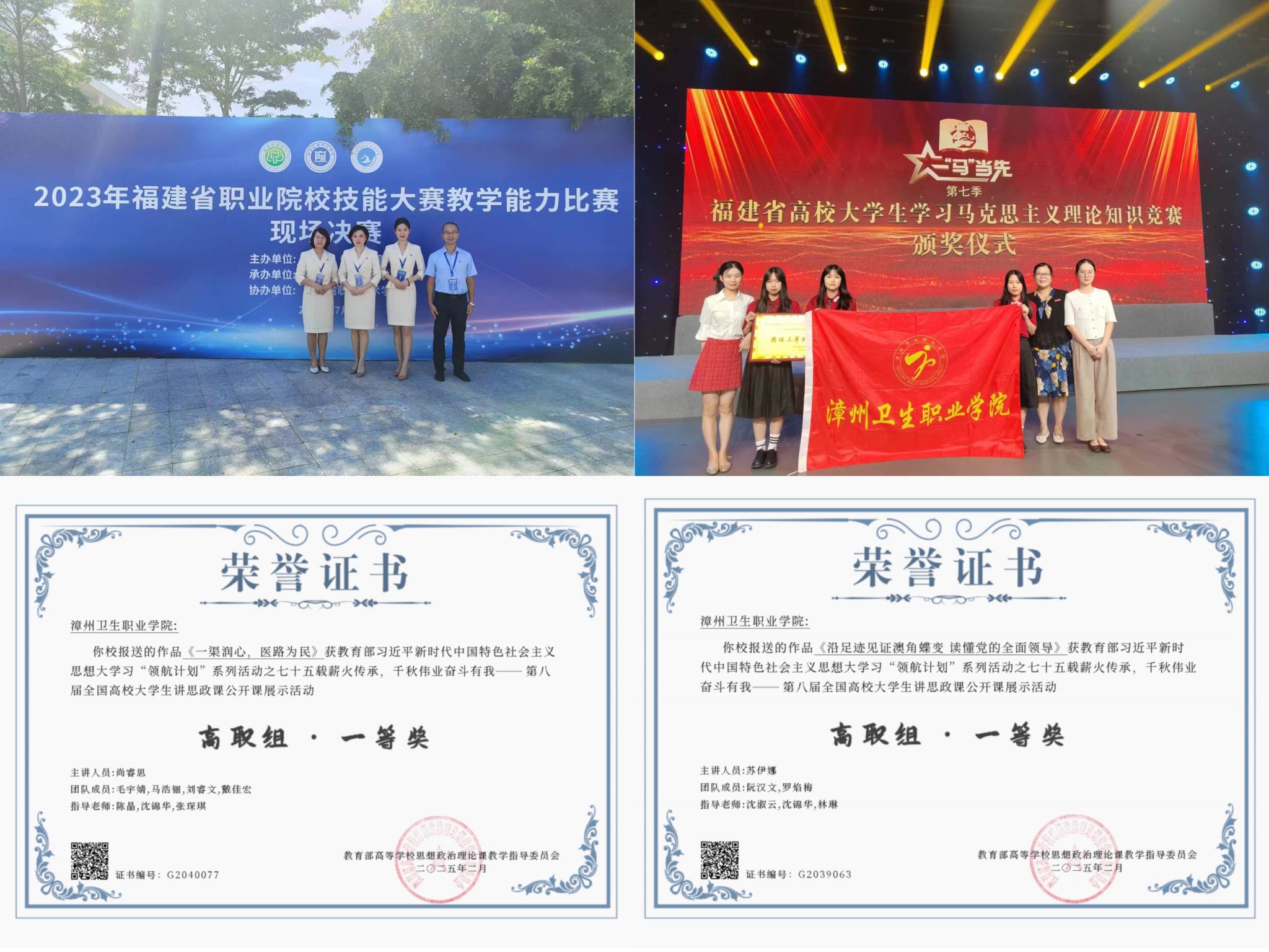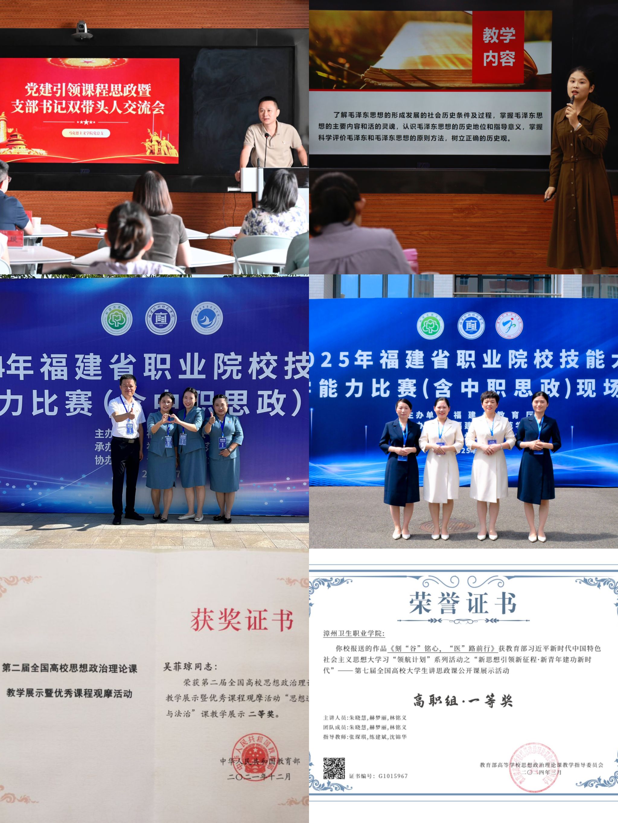 马克思主义学院:获全国高校思政课教学展示活动二等奖2项、全国职业院校教学能力比赛三等奖1项,连续五年蝉联省级教师教学能力大赛一等奖;获省级教育教学改革精品项目立项13项;指导学生参与理论学习和实践展示活动,获国家级奖项5项、省级以上奖励22项。