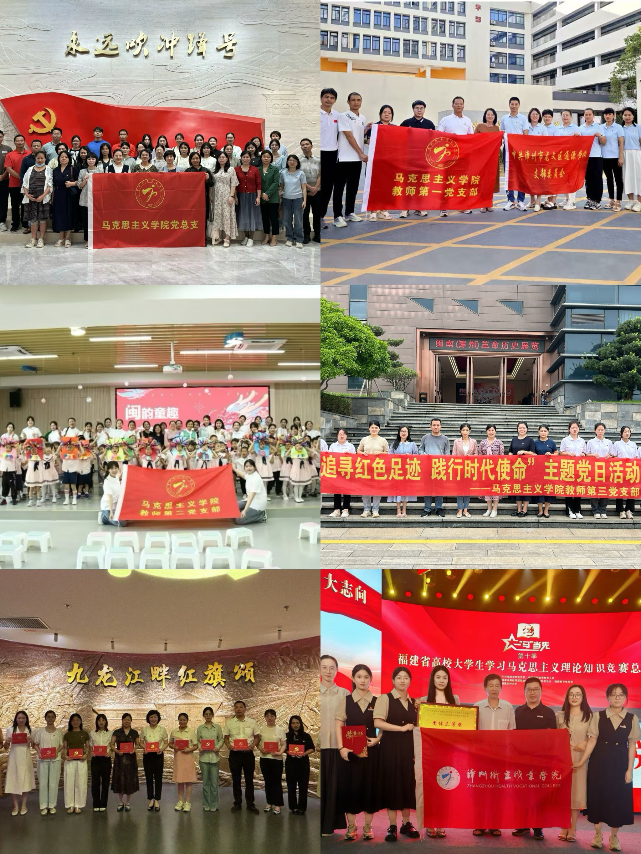 马克思主义学院党总支坚持夯实基层党组织建设,推动业务与党建工作双融双促。搭平台,共同提升思政教育新水平。充分发挥党员专业和技能优势,与漳州职业技术学院文化旅游学院、漳州市龙海一中、漳州通源学校、漳州卫生职业学院中医与康复学院、药学院等校内外党组织共建,积极推动大中小学思政课一体化建设。立品牌,积极推动党建品牌建设与立项活动。围绕学院特色,以支部立项、“党员先锋岗”、主题党日活动等多举措,创建“文化润心,医者仁爱 ”党建品牌,提升育人新高度。树典型,充分发挥党组织“头雁效应”。以创建“头雁工作室”为抓手,大力抓好支部书记双带头人工作,1位支部书记荣获省级优秀教师称号。近几年来荣获福建省高校大学生学习马克思主义理论“一”马当先知识竞赛三等奖2项、优胜奖1项。