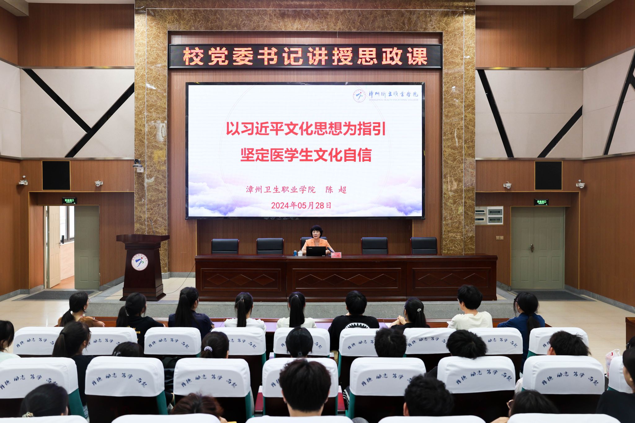 为贯彻落实习近平总书记对学校思政课建设作出的重要指示,推进习近平文化思想进课堂,5月28日下午,学校党委书记陈超以《以习近平文化思想为指引,坚定医学生文化自信》为题为同学们讲授了一堂意蕴深刻、有“知”有味的思政课。