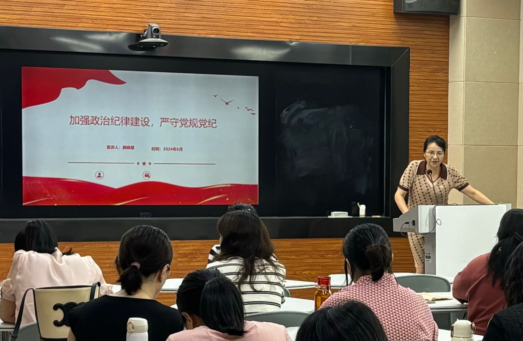 党总支书记通过理论学习、案例分享、联系工作实际等方式相结合,深入浅出地阐述了纪律严明是党的光荣传统和独特优势、开展党的纪律建设的重大意义、党的纪律建设与党的事业之间的紧密联系。她强调,要把党的纪律刻印在全体党员的心上,做到重在经常、融入日常,以上率下、以点带面,组织锻造、成风化人,正面引导、反面警示,通过抓纪律、严规范,推动党总支工作增质提效。