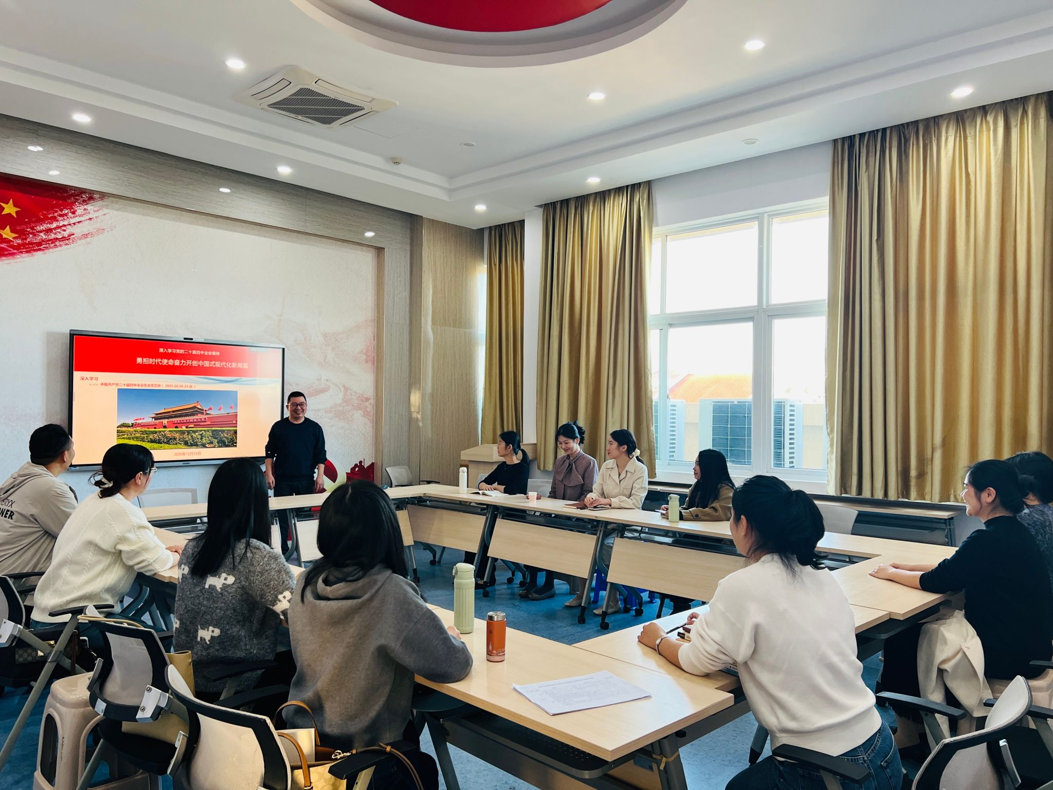 12月23日下午,马克思主义学院教师第四党支部在党建活动中心举行了一场别开生面的党的二十届四中全会精神专题宣讲会。与以往单向灌输式的宣讲不同,本次会议采用面对面、互动式座谈的形式,让理论学习在思想碰撞中焕发新的活力。