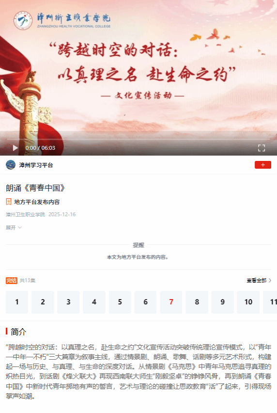 学习强国:玩转同学汇|漳州卫生职业学院:“跨越时空的对话:以真理之名,赴生命之约"文化宣传活动