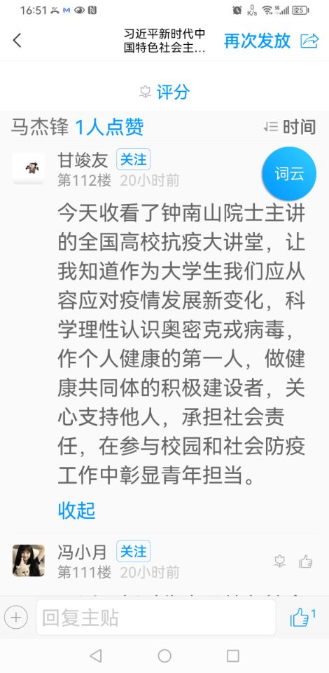 此外,我院还以课程为单位组织学生在学习通上发起热议。