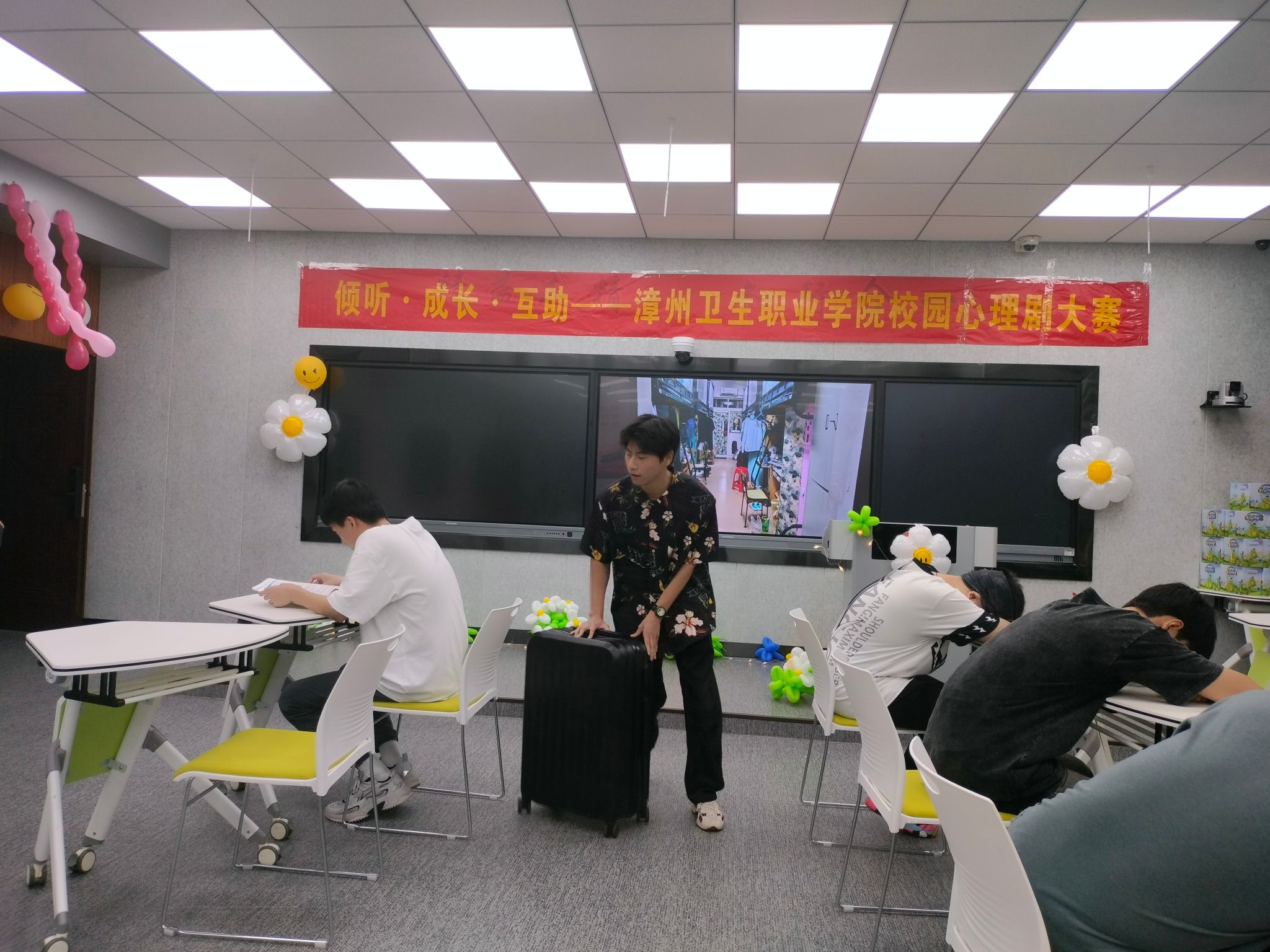本学期《大学生心理健康教育》实践课主题活动为校园心理剧大赛,经过各班剧本筛选、初赛和复赛三个阶段,最终选取10个节目进入决赛。决赛节目重点围绕大学生中比较常见的宿舍关系、学习压力、人际交往、校园霸凌、网络暴力、校园贷、亲子关系、家庭经济困难等方面引发的心理问题进行表演,反映了大学生经历的各种困惑、心路历程以及解决办法。经过激烈角逐,护理系2022级高职护理一班表演的《灭霸》力压群雄摘得桂冠,评出二等奖4个,三等奖5个,并有三位学生荣获最佳男演员、最佳女演员和最佳编剧奖。