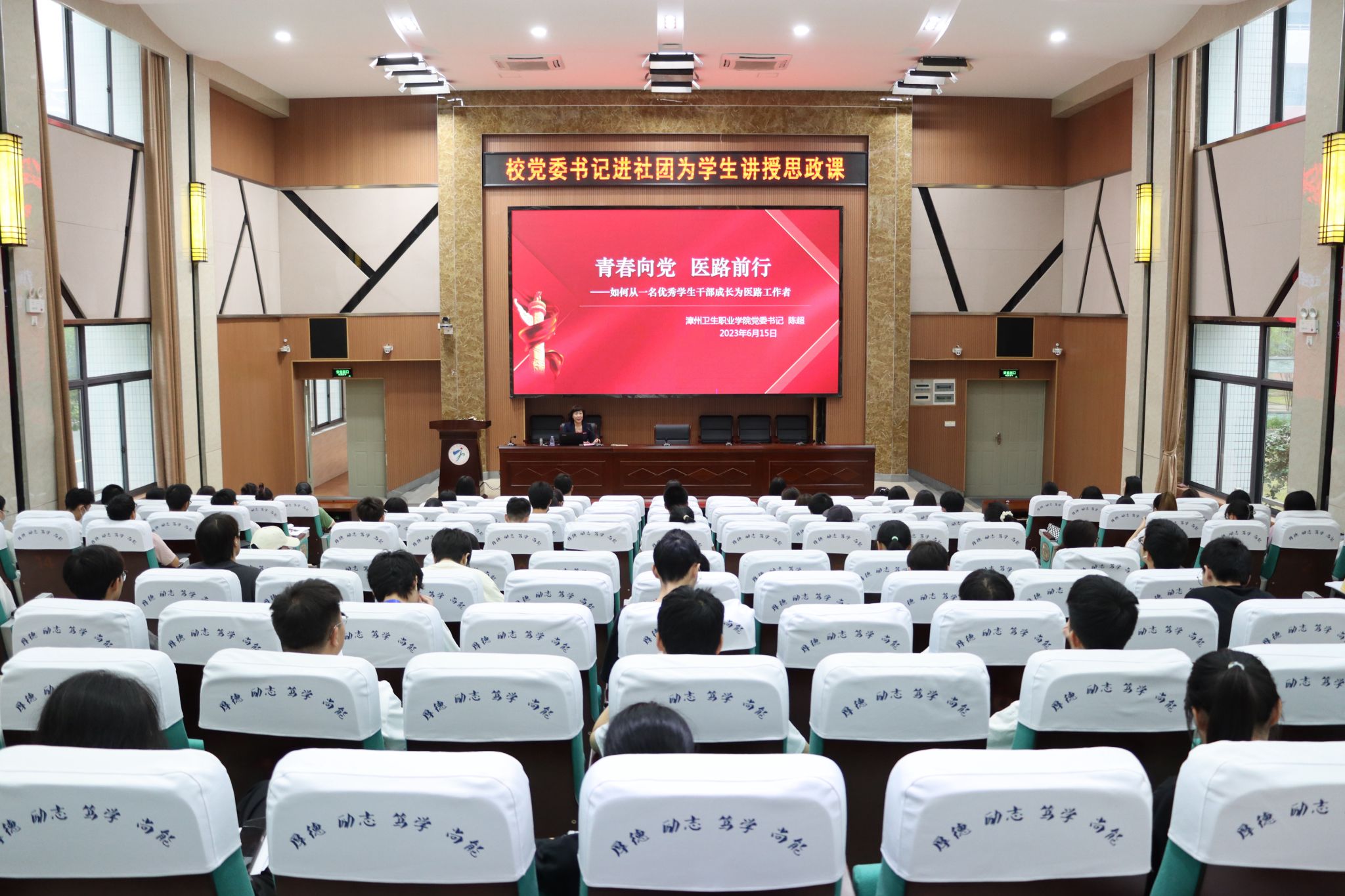 陈超以何为青春,青年何为为切入点,从新时代中国共产党的青年观、新时代青年成才的基本要求等方面,阐述了如何从一名优秀学生干部成长为医路工作者。她指出,今天在座的同学们都是学生干部,是新时代青年的重要组成部分,且未来从事的大都是与人民群众生命健康息息相关的卫生医疗健康行业,要成长为医路工作者,一要坚定信念、秉持医风,做“敬业”的医路工作者;二要立德修身、乐于奉献,做“乐业”的医路工作者;三要严谨求实、勤于钻研,做“勤业”的医路工作者;四要创新引领、勇于担当,做“精业”的医路工作者。