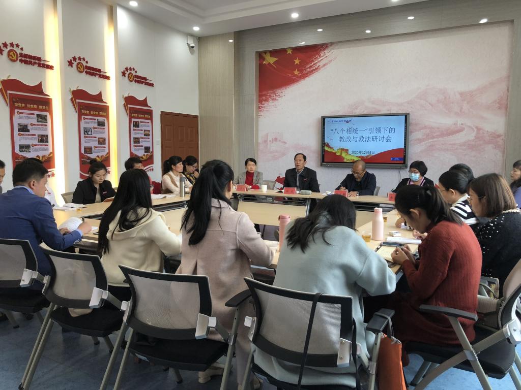 12月8日下午,在党建活动中心召开思政课教改与教法研讨会暨思政课建设现场调研办公会,党委书记林忠与思政课教师面对面交流,会议由党委委员、党工部部长方鑫主持,人事处、教务处等职能部门以及全体思政课教师出席会议。