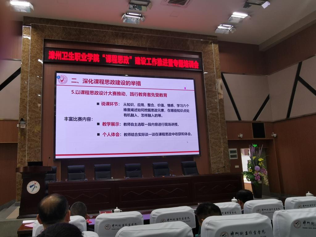 陈义三以分享案例的形式作为切入点,就《高等学校课程思政建设指导纲要》及如何全面推进学院课程思政建设进行解读答疑;方鑫深入解读《漳州卫生职业学院推进课程思政教育教学改革实施方案》,进一步强化思想认识,明确责任目标,全面助推课程思政建设。