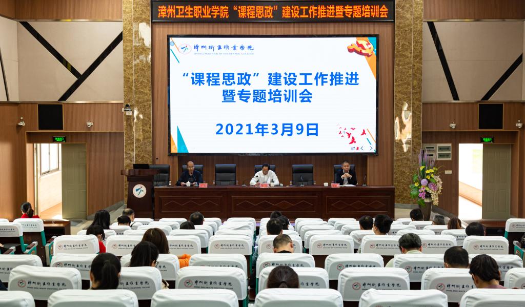 3月9日下午,我院在学术报告厅举行“课程思政”推进暨专题培训会。学院党委书记林忠、副院长陈义三出席会议,学院课程思政教育教学改革工作领导小组成员、各系部教学科研办负责人、专业带头人、教研室主任及教师代表参加培训,会议由党工部部长方鑫主持。