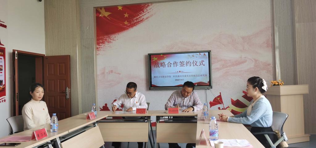 4月21日下午,我院与中共漳州市委党史和地方志研究室共建暨战略合作签约仪式在党建活动中心举行。市委党史和地方志研究室主任朱建池,学院党委副书记黄乃光代表双方签约。