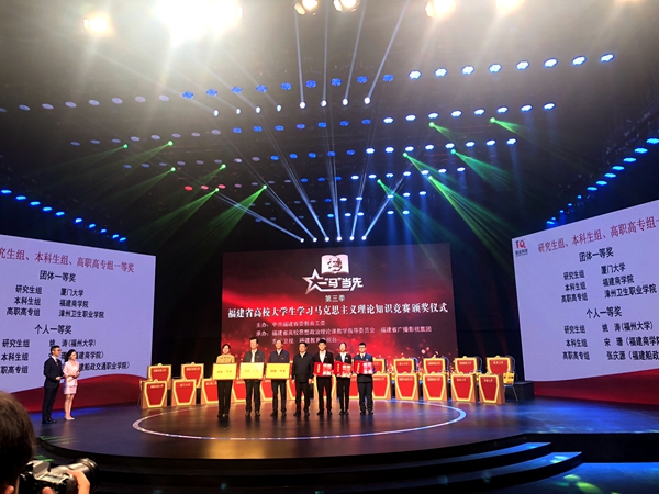 11月26日,由中共福建省委教育工委主办,福建省高校思想政治理论课教学指导委员会、福建省广播影视集团、东南卫视和福建教育电视台承办的第三季福建省高校大学生学习马克思主义理论“一‘马’当先”知识竞赛高职高专组总决赛在福建省广播影视集团演播厅圆满结束。
