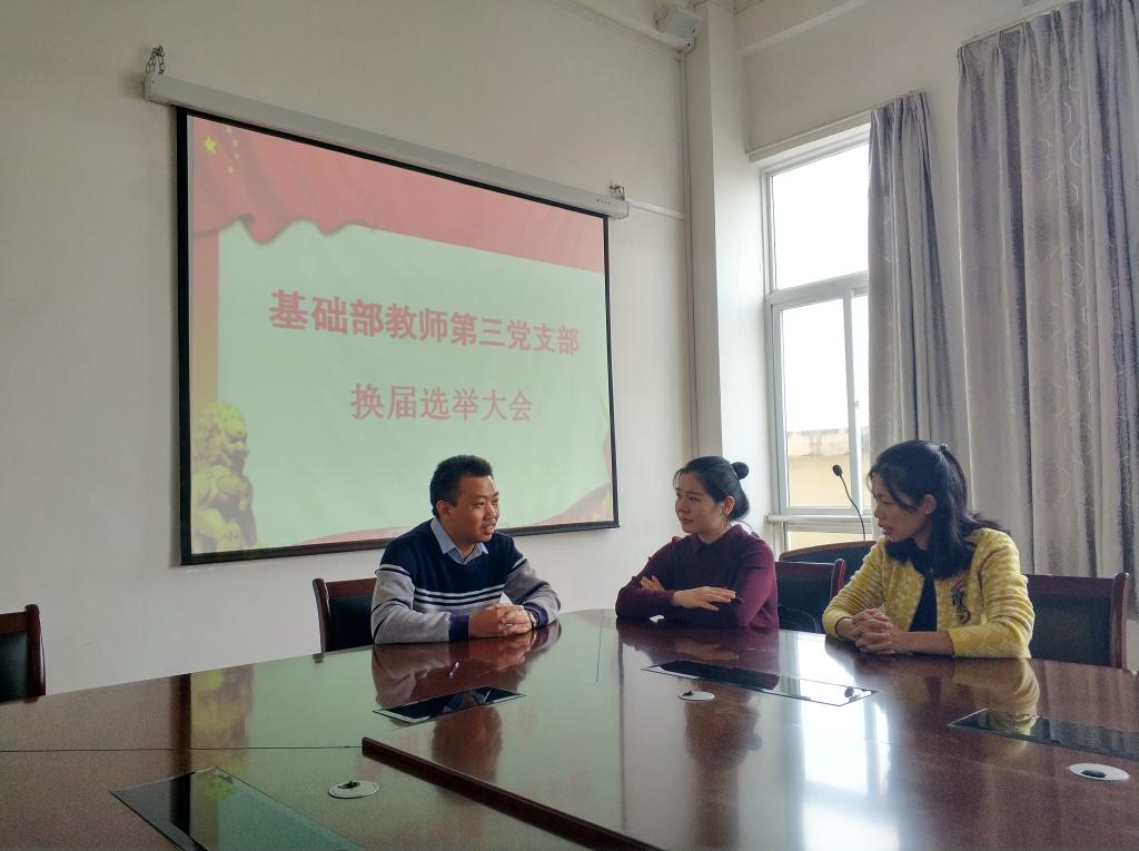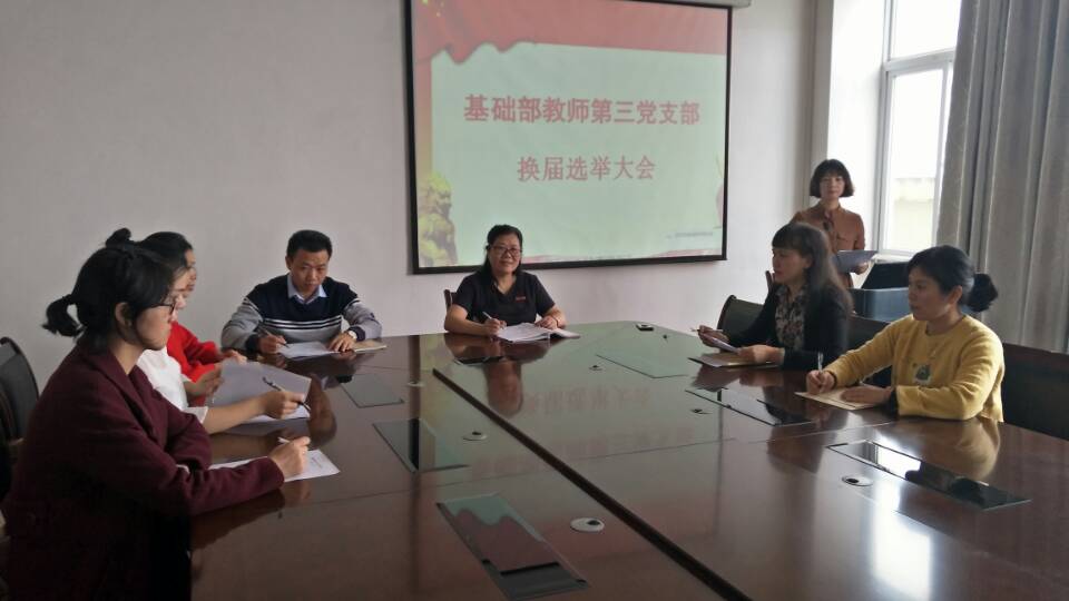 11月27号下午,基础部教师第支部在学院图书馆7楼会议室召开新一届支部委员会换届选举大会,会议由基础部党总支组织委员郭鸣娟主持,基础部教师第支部全体党员参会。