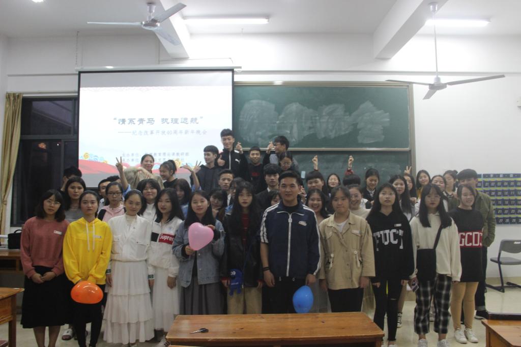 12月23日晚上,我院青马社在厚德楼104室举行“情系青马,执理远航”暨庆祝改革开放40周年新年晚会,青年马克思主义学社全体成员参加,此次晚会还邀请读书协会会长,武术协会会长,心理协会会长。