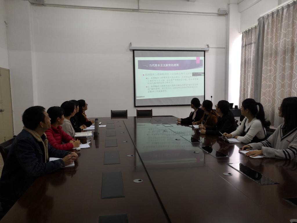根据教育部社科司、福建省教育厅思政处的安排,3月14日上午,思政部组织无课教师在图书馆707会议室集体收看了2019年高校思政课骨干教师研修班课程直播暨同步收看南开大学王新生教授(长江学者)主讲的《正确认识当代资本主义新变化和西方民主政治》的专题报告。