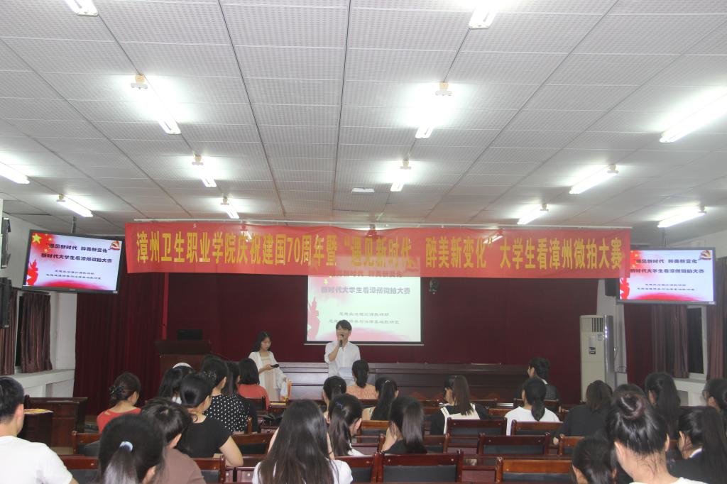 6月4日晚上,庆祝新中国成立70周年暨“遇见新时代 醉美新变化”大学生看漳州微拍大赛决赛在我院明诚楼6楼演播室隆重举行。