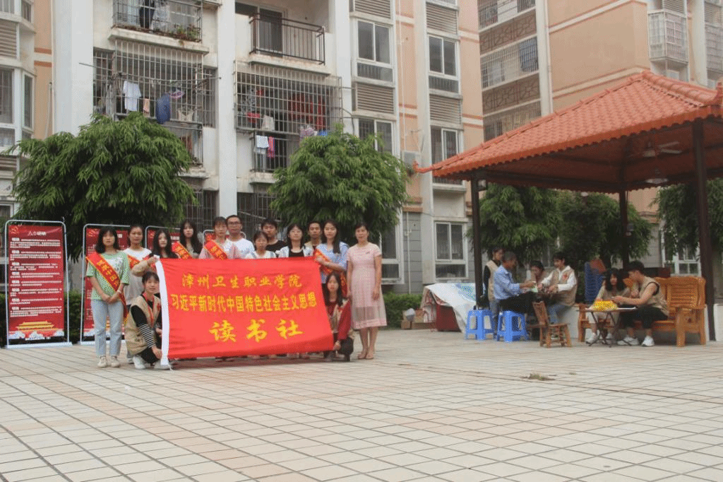 2019年10月27日上午,漳州市青年讲师团成员,思政部陈艺芬副教授带领学院习近平新时代中国特色社会主义思想读书社、青马学社部分社员,联合院红十字服务队,到金峰社区进行“用青春梦守护健康梦 健康中国你我同行”的宣讲活动。