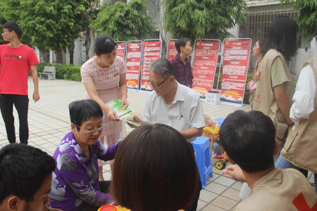 宣讲活动围绕“不忘初心 牢记使命”主题,紧扣学习新思想,拥抱新时代,进行“用青春梦守护健康梦 健康中国你我同行”宣讲。包括新思想展板宣传、健康普查(量血压、测血糖等)、宣讲健康中国,分发健康中国手册等一系列宣讲活动,得到了社区居民的欢迎。