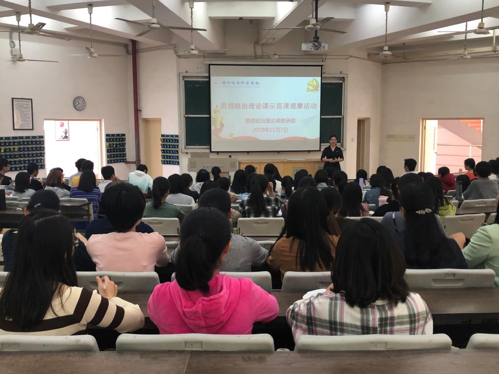 为了发挥青年优秀教师的教学示范作用,努力形成“思政金课”带动一片的示范效应,切实提升思政课整体团队的教学水平,加强思政课内涵建设。11月7日上午,思政部举行《思想道德修养与法律基础》课程观摩活动。学院联系领导方鑫、教研室教师、部分兼课教师参加活动。