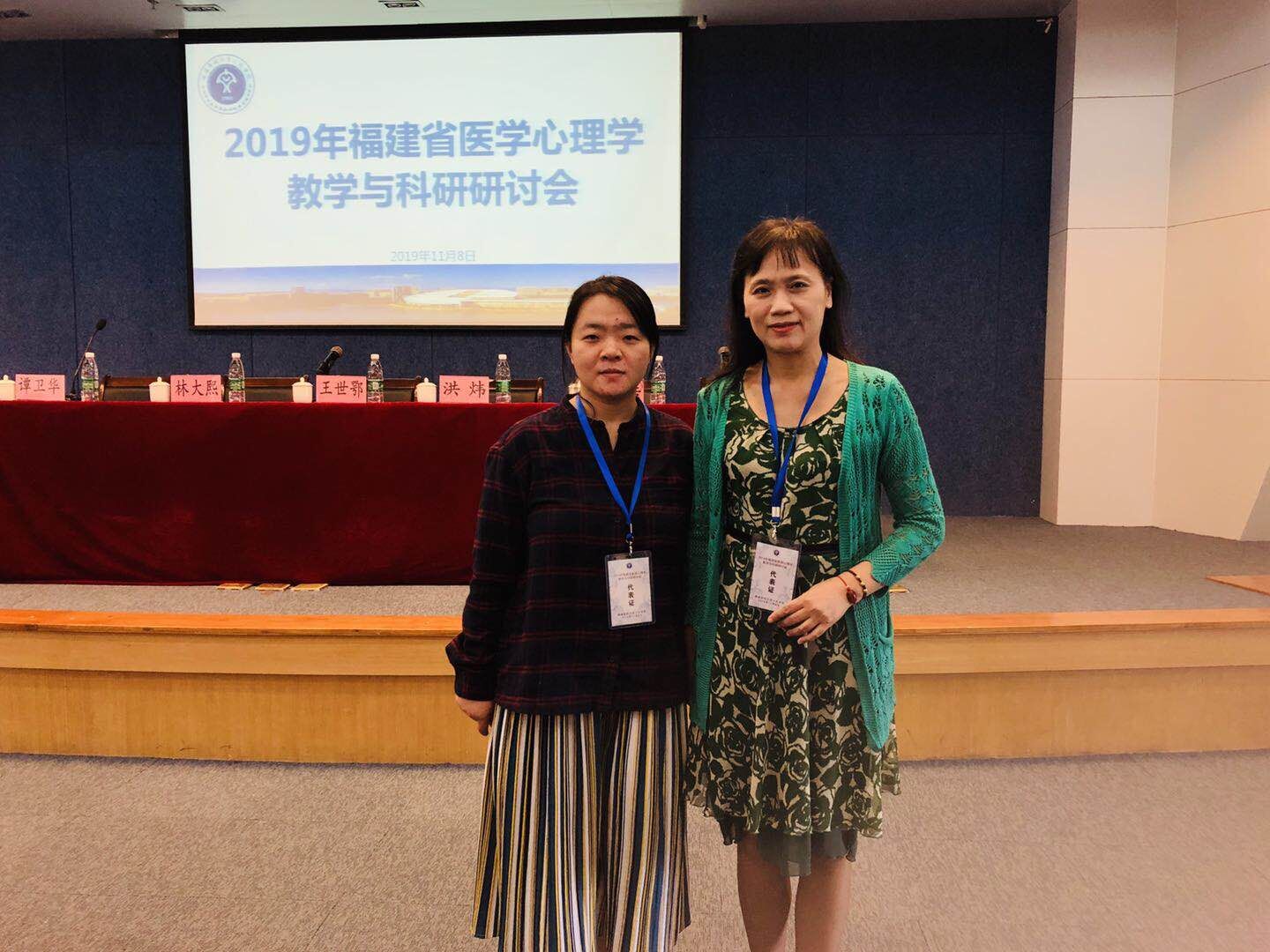 2019年11月7日-8日,思政部心理教研室主任刘凌霜教授和朱雅兰老师到福州参加由福建医科大学人文学院主办的“2019年福建省医学心理学教学与科研研讨会”。
