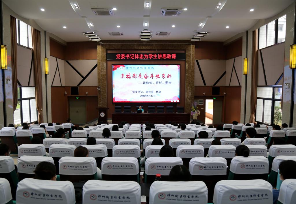 2020年6月17日,党委书记林忠以“幸福都是奋斗出来的”为题,在学术报告厅为习近平新时代中国特色社会主义思想读书社、青年马克思主义学社的学生们上了一堂思政课。