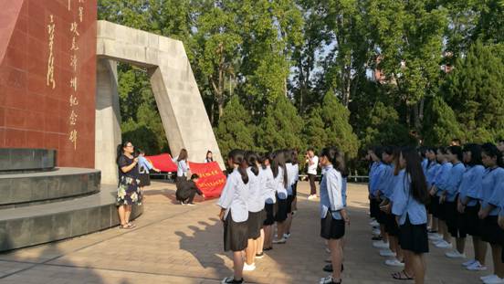 在纪念馆里,厚重的历史气息扑面而来,社员们跟随着讲解员的脚步,仿佛身临其境,领略着先烈们为国献身的风采,激发了社员们的爱国热情。在纪念碑前,社长和副社长为新社员佩戴社徽,62名新社员面向鲜艳的社旗、党旗庄严而神圣地宣誓。