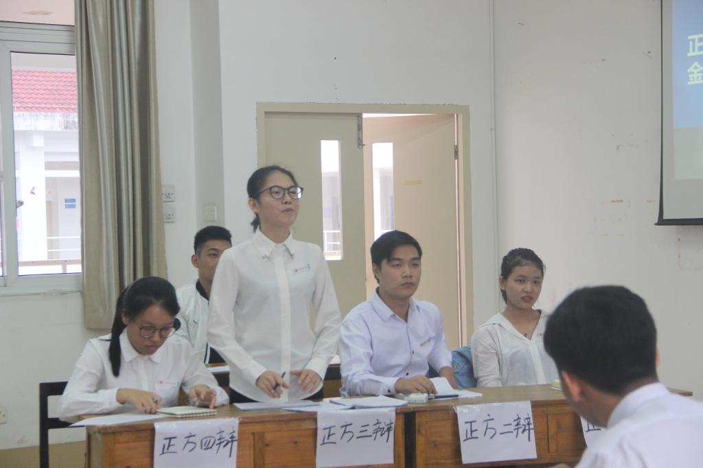 双方辩手在热烈的掌声中正式出场。双方一辩开始阐述各自观点,两位辩手用具有高度概括性的陈述为本场辩论开篇立论,主题鲜明,陈词慷慨激昂。进行到对辩环节时,双方针芒相对,妙语连珠。在自由辩论环节上,8位辩手你来我往,侃侃而谈。一方从容自若,口若悬河,另一方气定神闲,巧舌如簧。双方各据一势,时有语惊四座!尽显辩才与智慧。最终,反方以7:0的压倒性优势胜出。正方辩手戴璐璐以及反方辩手张初炳以其出色的表现被评为“最佳辩手”。