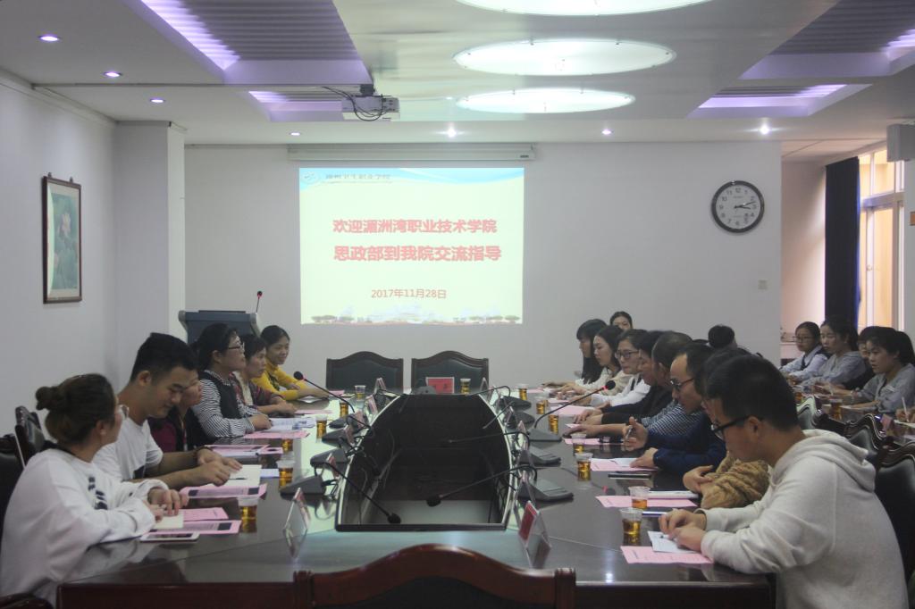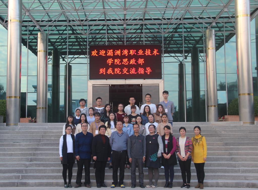 11月28日下午,湄洲湾职业技术学院思政部许明强书记带领正副主任、青马学社指导老师及青马学社正副社长、青马学社各部门负责人一行14人前来我院交流考察学习。我院思政部负责人、教研室主任、青马学社指导老师及青马学社正副社长、青马学社各部门负责人参加交流座谈。