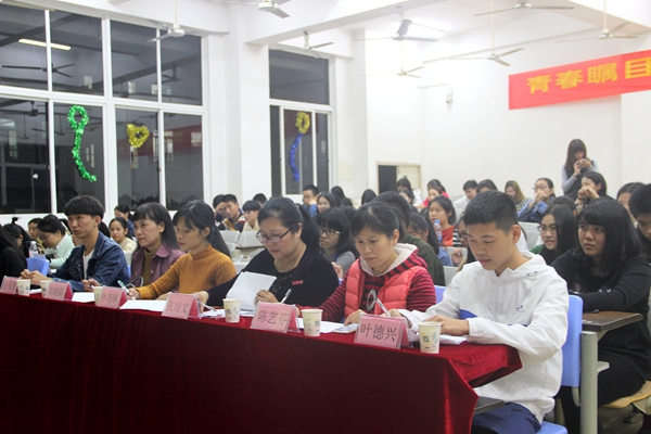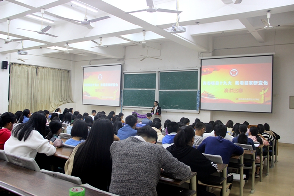 12月14日晚上,以“青春瞩目十九大 我看国家新变化”为题的演讲比赛决赛在明德楼5教举行。比赛以评委评审,现场演讲方式进行,思政部教师、部分院社团负责人及学生代表担任评委,院青年马克思主义学社、习近平新时代中国特色社会主义思想读书社共80余位社员到场观看。