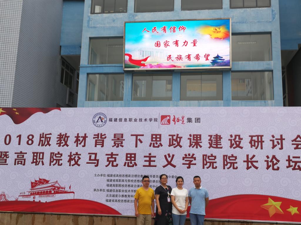 6月22日,由福建省高校思政理论课教学指导委员会高职分委会、福建省高职高专院校思想政治理论课建设联盟主办的2018版教材背景下思想政治理论课建设研讨会暨高职院校马克思主义学院院长论坛在福建信息职业技术学院举办,我院思政部选派4名教师参加并聆听名师名家论坛。