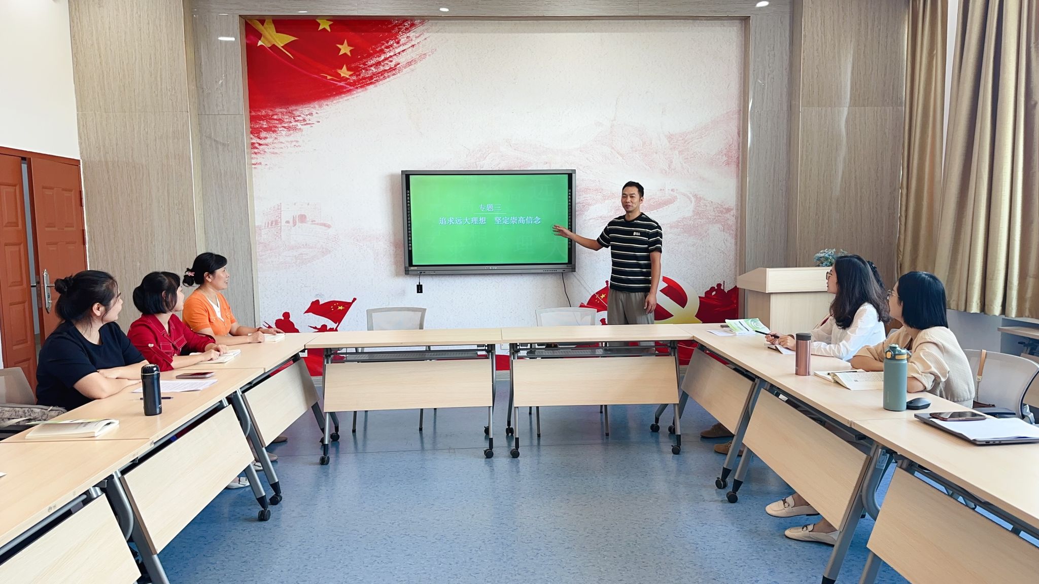 此次备课会主要围绕《思想道德与法治》课程专题三“追求远大理想 坚定崇高信念”组织教学设计分享会。会上,教师陈伟艺进行教学展示,通过生动的课堂案例,融合授课专业分享教学思路,提出了富有创意的教学方法。参会教师分享了教学过程中如何帮助学生确立人生目标,激发学习动力的经验。