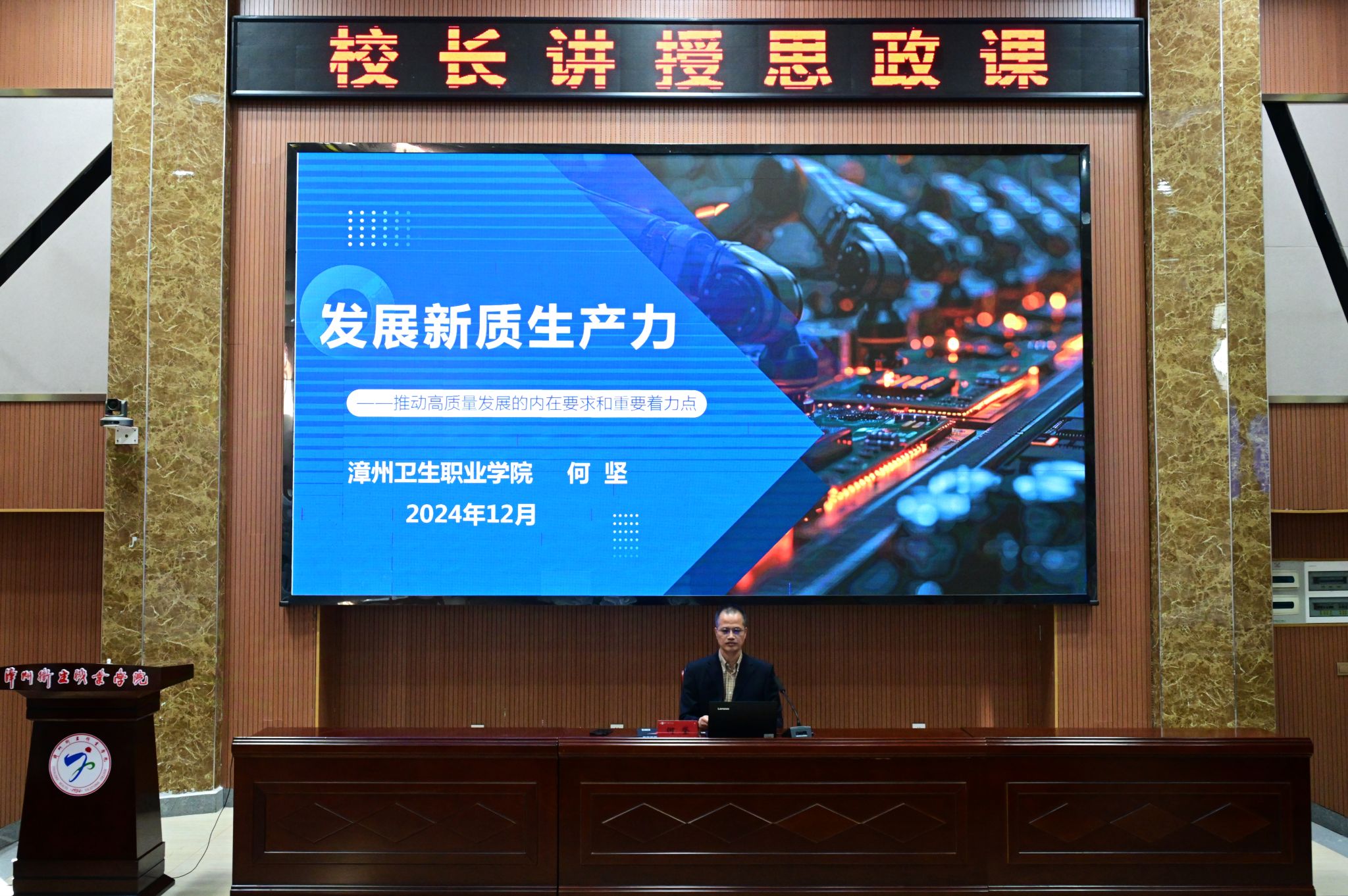 为深入学习贯彻习近平总书记关于加快发展新质生产力的重要论述,12月10日,校长何坚讲授了题为《发展新质生产力——推动高质量发展的内在要求和重要着力点》的思政课。