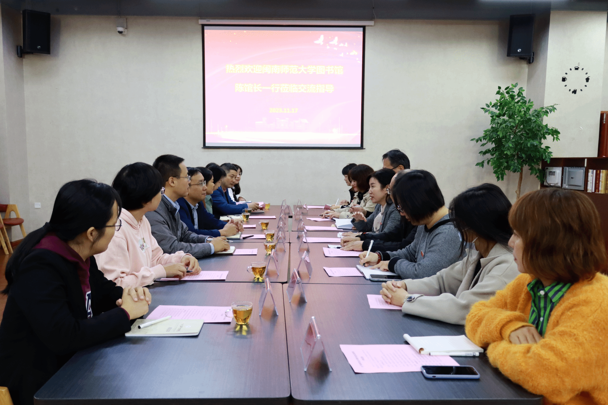 11月17日,闽南师范大学图书馆陈添源馆长一行8人到我校图书馆调研交流,副校长陈义三出席,馆长陪同。