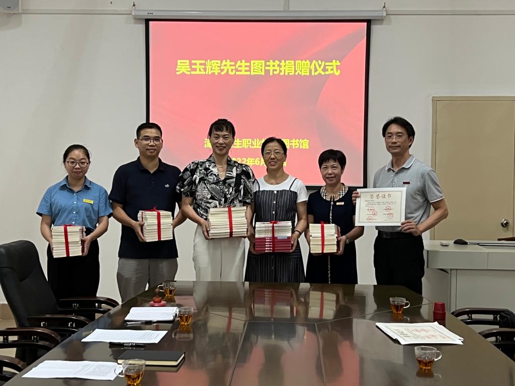 近日,我院图书馆在会议室举办吴玉辉先生图书捐赠仪式,出席仪式的有闽南师范大学图书馆馆长助理沈秀琼、漳州职业技术学院图书馆副馆长蓝少华、漳州城市职业学院图书馆副馆长陶明玉及兄弟院校图书馆同仁,仪式由馆长吕立主持。