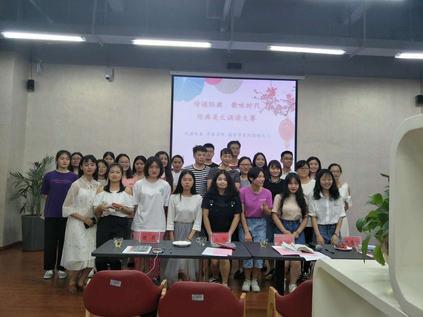 近日,图书馆在书吧举行“悦读青春 书香卫院”读书节系列活动之“传诵经典歌咏时代”经典美文诵读大赛,邀请林旭、陈薇(团委)、阮慧玲等三位老师担任评委。