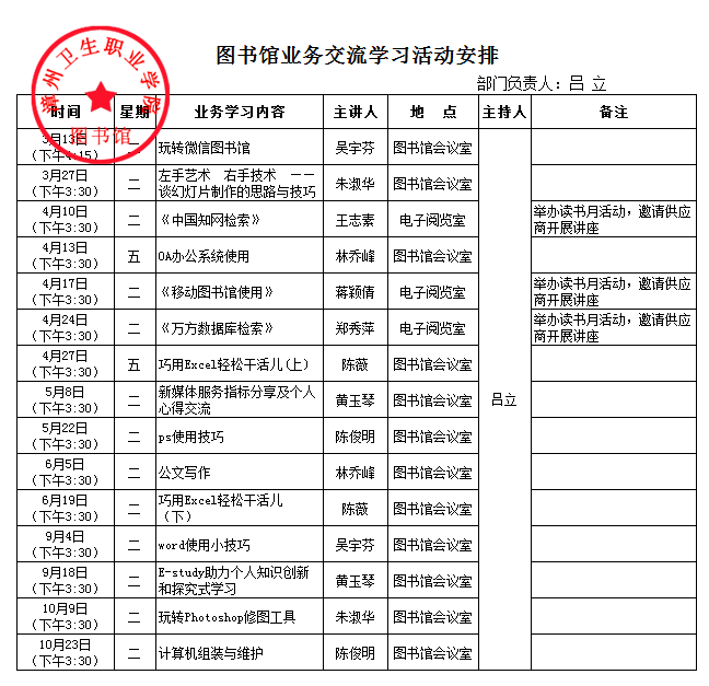 图书馆业务交流学习活动安排
