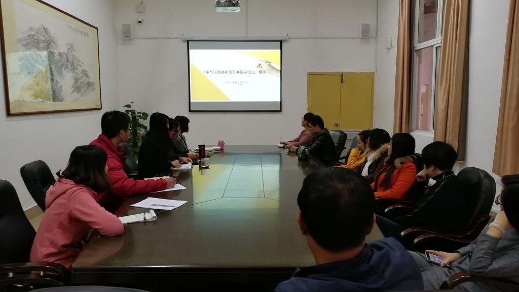 1月9日下午,图书馆组织全体馆员在会议室学习《中华人民共和国公共图书馆法》(以下简称《公共图书馆法》)。