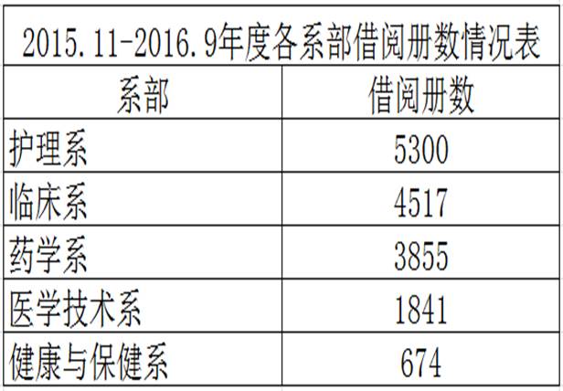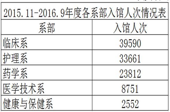 2015.11-2016.9年度各系部入馆次数和借阅册数情况表