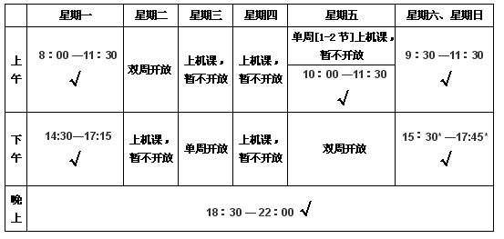 1、安排上机课时,暂不开放,打√的时间段都有开放。