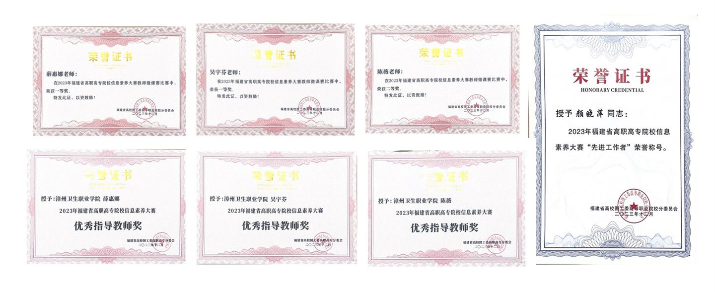 此次信息素养大赛全省共有35所高职院校17020名学生参赛,经过激烈角逐,我校师生荣获学生个人赛一等奖2项、二等奖4项、三等奖3项,教师微课赛一等奖2项、二等奖1项,先进工作者1项,3位老师被评为优秀指导教师,是福建省高职高专院校信息素养大赛举办以来获得奖项数量最多的一年。