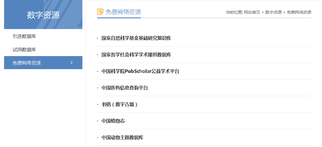 其三,重新规划“数字资源”模块,细分为引进数据库、试用数据库、免费网络学术资源三个部分,新增国家自然科学基金基础研究知识库、国家哲学社会科学学术期刊数据库、中国科学院PubScholar公益学术平台等公益性学术资源外链。