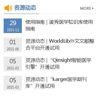 其二,增加“资源动态”栏目,用于展示引进图书资源和试用数据库信息,以便读者迅速了解图书馆新资源。