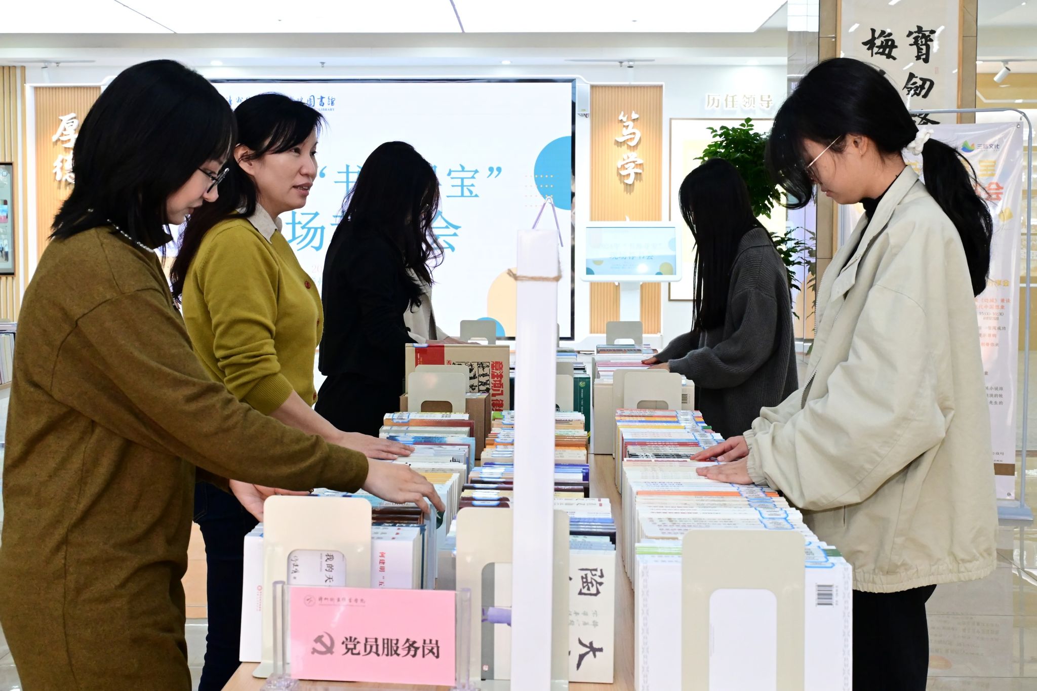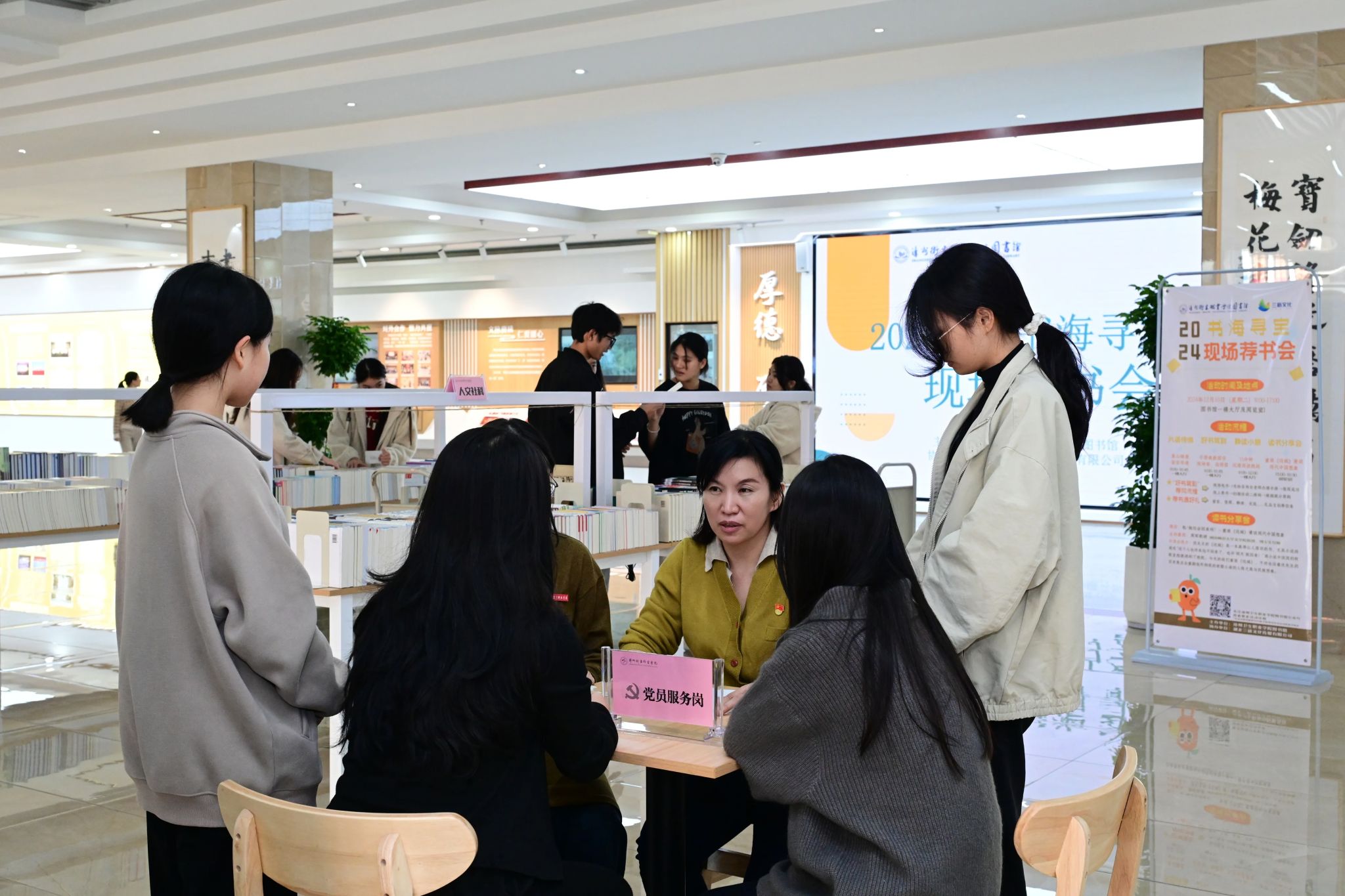 12月10日下午,图书馆在一楼大厅开展2024年“书海寻宝”现场荐购,以持续推进书香校园建设。活动始终,党员先锋示范岗如灯塔般闪耀光芒,馆长带领全体馆员投入各环节,切实发挥党员的先锋模范作用,以高度责任感和使命感保障活动顺利进行。