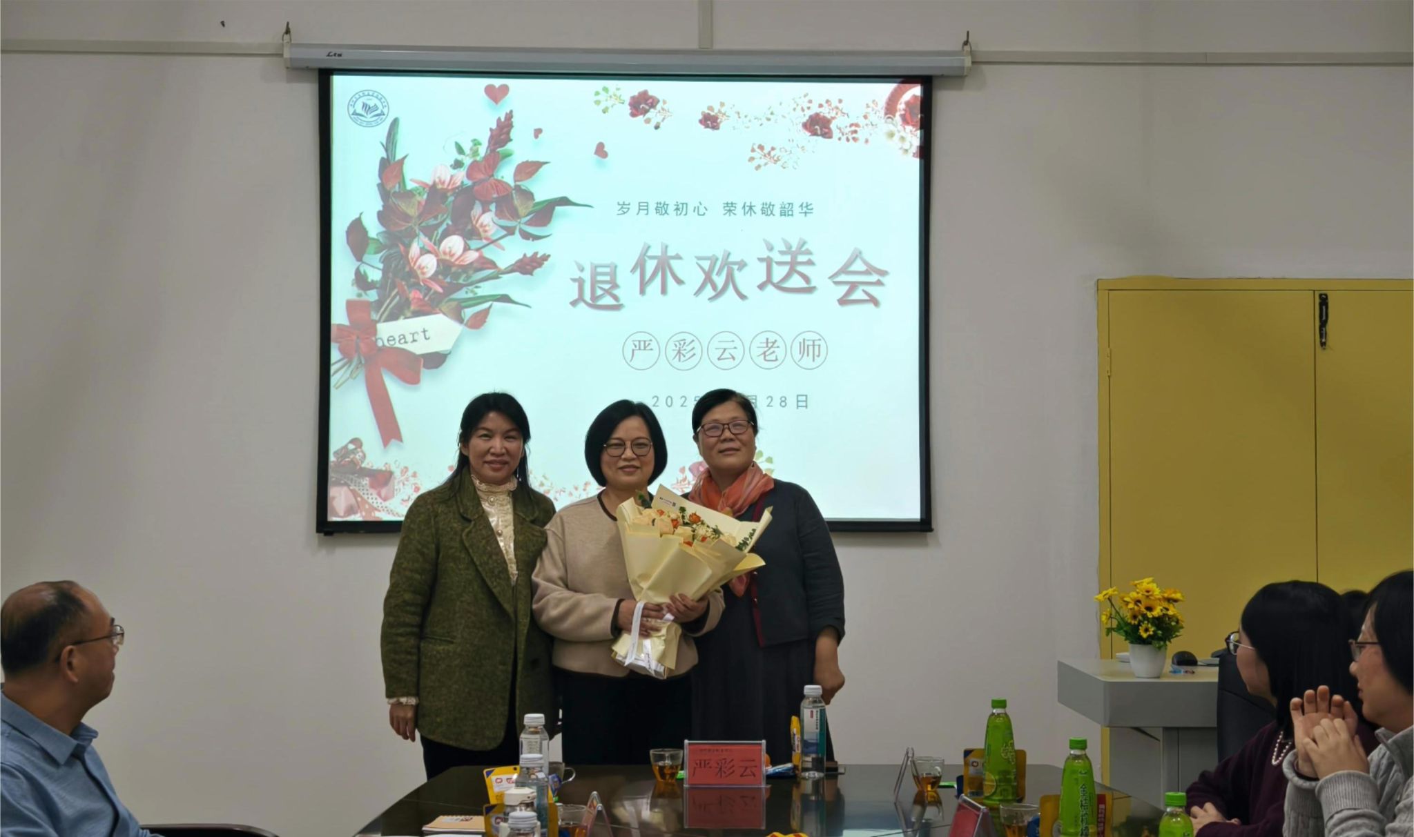 在温馨的氛围中,工会主席和馆长为退休教师献花。工会主席回忆与严老师共同为学校发展奋斗的时光,希望她退休不褪色,一如既往支持学校和图书馆的稳步推进,并衷心祝愿退休生活美满幸福。馆长肯定并感谢严老师为图书馆发展作出的积极贡献,希望她离岗不离心,继续发挥经验优势,持续为图书馆发展建言献策,也期望在职馆员传承和发扬退休教师的优良传统和作风,开拓创新、爱岗敬业。严彩云发表个人感言,表达对单位、领导和同事的感恩和不舍,祝福图书馆持续文化育人、滋养人心,祝愿学校和图书馆事业迈向新高度。
