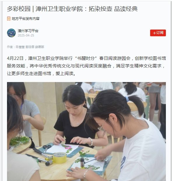漳州人民广播电台、闽南日报、学习强国:漳州卫生职业学院举办“书醒时分”春日阅读游园会