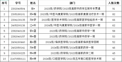 为充分发挥阅读引领作用,营造浓厚校园文化氛围,图书馆面向全校学生开展月度“借阅达人”和“入馆达人”评选活动。2025年4月学生读者借阅册数排行榜单和入馆次数排行榜单公布如下: