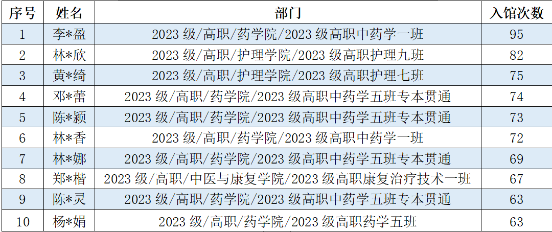 为激发学生阅读热情,充分发挥图书馆阅读引领作用,营造校园阅读氛围,图书馆面向全校学生开展月度“借阅达人”和“入馆达人”评选活动。