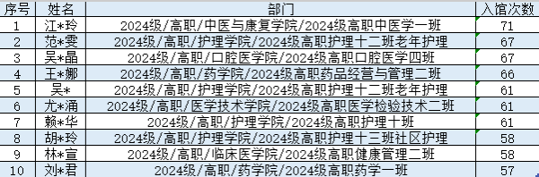 为激发学生阅读热情,充分发挥图书馆阅读引领作用,营造校园阅读氛围,图书馆面向全校学生开展月度“借阅达人”和“入馆达人”评选活动。