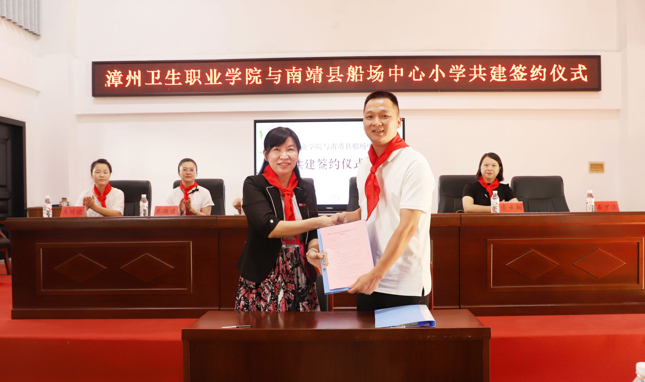9月16日,我校与南靖县船场中心小学共建签约仪式暨健康义诊进校园活动在船场中心小学顺利举行,我校图书馆馆长、南靖县船场镇镇长、船场镇宣传委员、我校临床医学院院长助理、船场中心小学校长等出席活动。