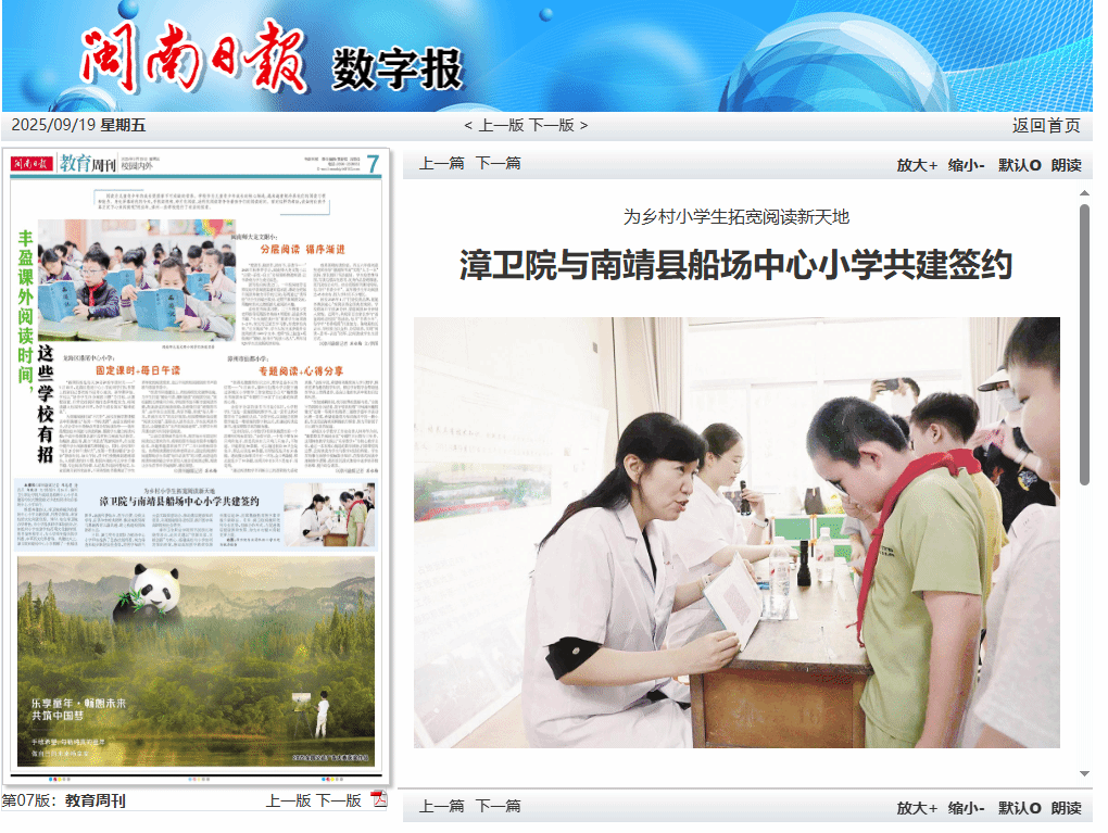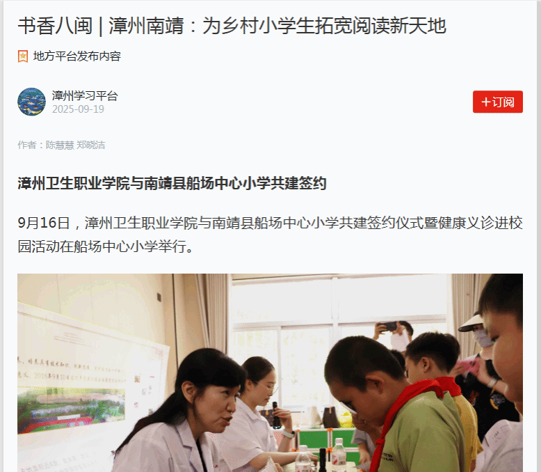 闽南日报、学习强国、南靖视窗:漳卫院与南靖县船场中心小学共建签约