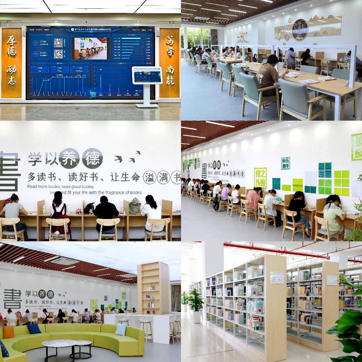以前瞻性视角推进图书馆空间改造与功能升级,推动图书馆向智慧化、数字化方向转型。通过增设电子书借阅机、数字人屏、综合文化展示屏等智能设备,完成图书层架标与三维地图建设,引进座位预约系统,实现了馆藏资源的精准定位与空间动态管理,提升了服务效能与管理智能化水平。自习阅览室焕新升级,阅览桌椅全面更换,人文元素有机融入,营造舒适雅致的文化空间,构建沉浸式、立体化的育人场景。